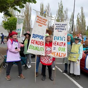 The Portland Raging Grannies were proud to participate in the 2022 Portland Pride Parade. We celebrate our LGBTQ+ community, family, friends, members, and neighbors. We support them as they live openly and authentically. Previous Next Raging…